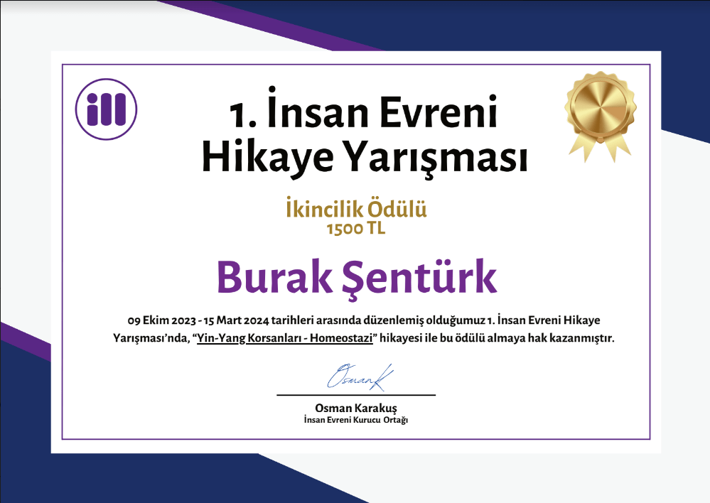 İnsan Evreni Hikaye Yarışması : “Yin-Yang Korsanları – Homeostazi” İkincilik Ödülü.